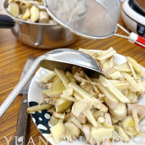 洗淨的老薑加入黑糖慢慢熬煮, 辛辣裡帶著一點甜, 香氣一冒出,整個人都暖了起來。️