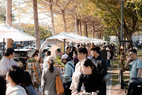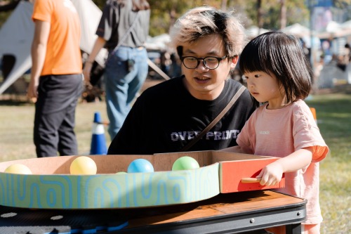 第二次合作,從檔期安排、攤商招募到篩選,兩周內就完成理想的攤位數量,儼然成為合作的默契。市集成了時光機的入口,像是在城市裡展開一場小小的探險與尋寶。有人在攤位前發現驚喜,有人在樹下看孩子奔跑、看光影移動。在黎明新村的生活節奏裡,我們不一定知道會遇見什麼,但總能在剛剛好的時間,收到屬於這個地方的驚喜。